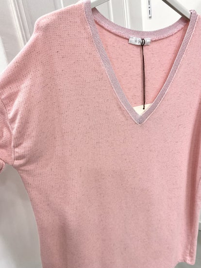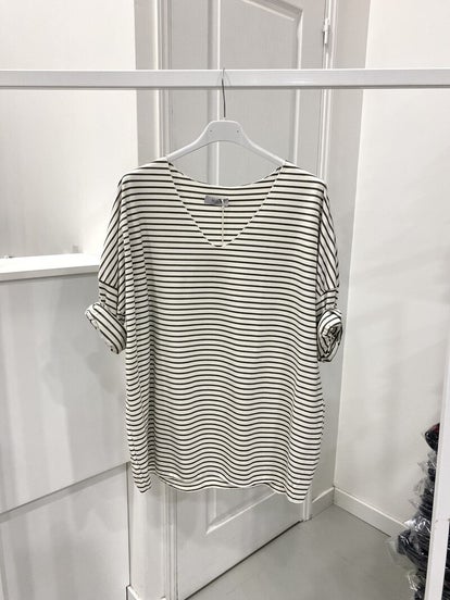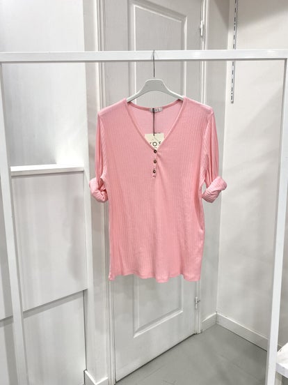 Top élégant en coton (95%) et élasthanne (5%), col en v.