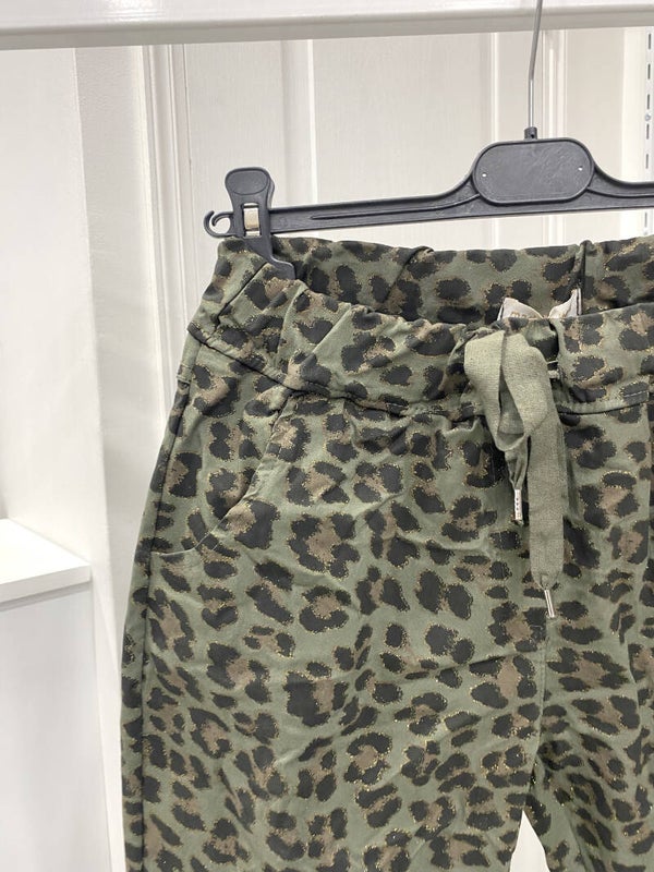 Pantalon imprimé LEOPARD avec paillette doré ,confortable, elastique a la taille, taille unique(38-44).