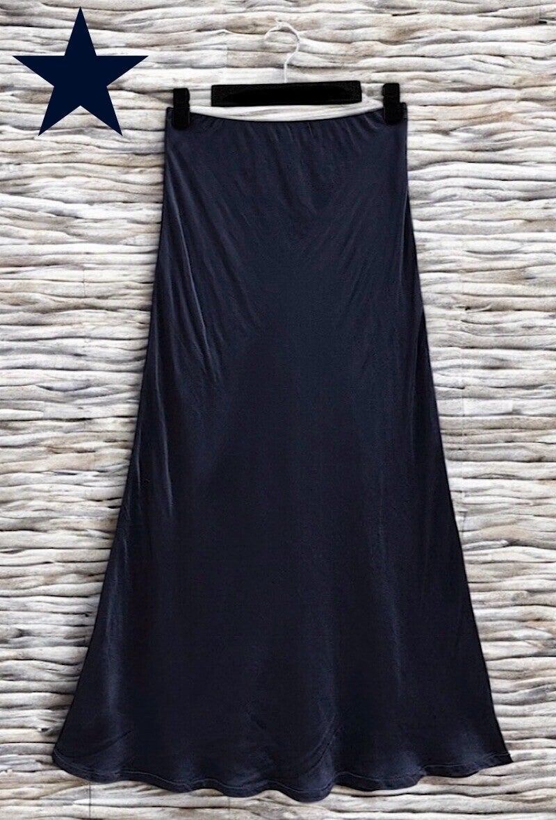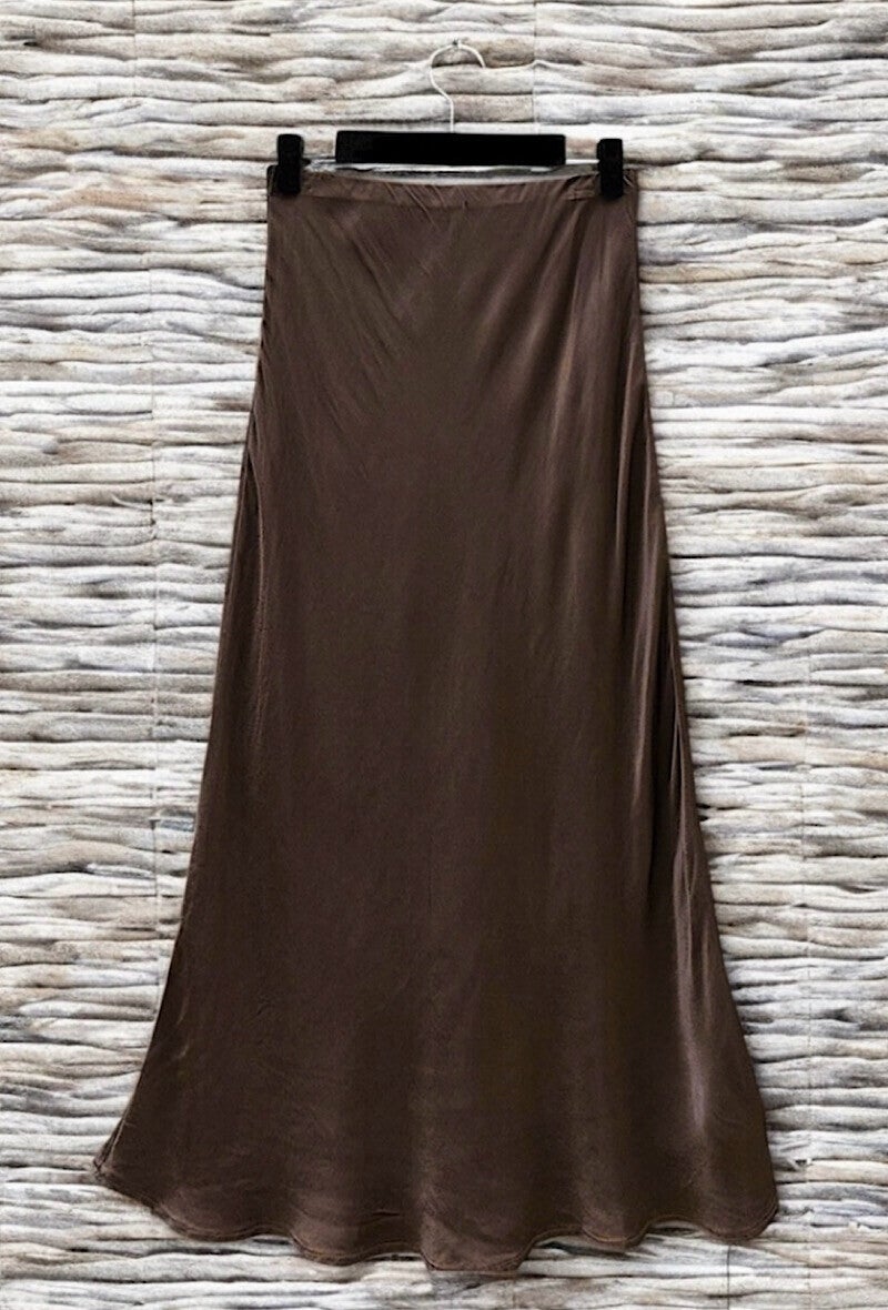 Jupe OCTAVE fluide et romantique, effet soie satiné, en viscose très soyeux. TU correspond à un 38 ⁄ 40. Très soyeux.
